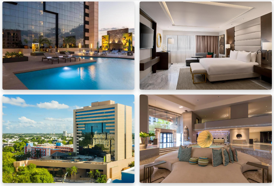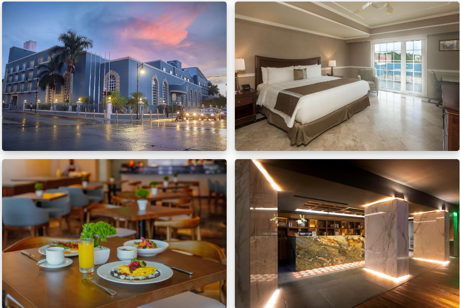 - 이용자 리뷰:"이 호텔에서의 경험은 아주 즐겁고 좋았습니다. 호텔은 고급스럽고 인테리어 또한 모던한 느낌이라서, 내부 인테리어가 주는 편안함도 있습니다. 방은 넓고 클래식한 분위기를 가지고 있었으며, 침대도 편안했습니다. 위치가 메리다 시내 중심부에 위치해 있어서 어디든 쉽게 이동할 수 있었고, 근처에 맛집도 많아서 식사하기도 편리했어요. 현대적인 편의시설을 즐기면서 멕시코 분위기도 같이 즐기고 싶은 분들에게 강력 추천합니다!"