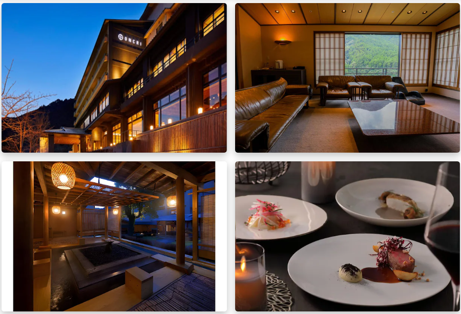 - 이용자 리뷰:" 사가 시내에서 30분 거리의 산 속에 위치한 고급스러운 호텔형 료칸이었다. 분위기 및 시설 모두 만족스러웠고, 온천 시설도 너무 잘되어 있어서 묵는 내내 행복한 여행이 되었다. 석식을 신청하지 않아서 저녁을 먹으러 나가려니 식사할 만한 곳이 좀 먼 것이 단점? 나처럼 일박만 한다면 주변에 아무것도 없으므로 석식까지 해서 호텔안에서 모든 것을 해결하고 호텔을 충분히 즐기는 것을 추천하겠다. 재 방문 쿠폰을 준 것도 좋았고, 다른 료칸과 달리 발렛 서비스를 제공한."