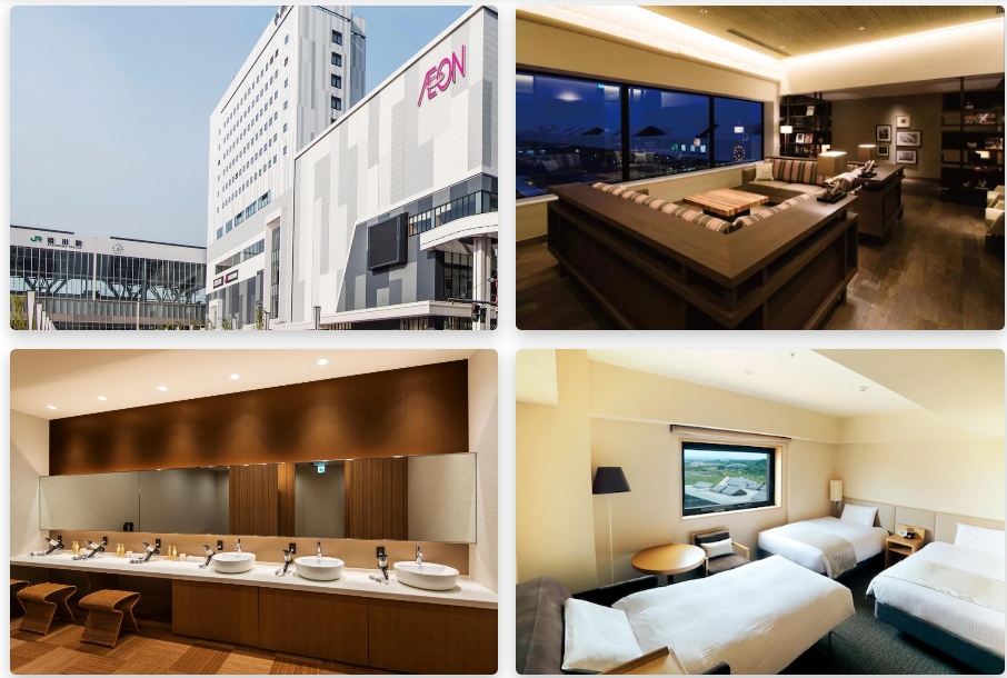- 이용자 리뷰:"아사히카와 이온몰과 붙어 있어 쇼핑과 주차가 편리합니다. 대욕탕이 크진 않지만 깔끔하고 시설이 좋아 아주 만족스러웠습니다. 방 컨디션도 좋고 가격 대비 전체적으로 만족스러웠습니다. 다음에 아사히카와에 가도 이 호텔에 묵고 싶습니다."