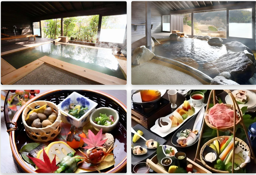 - 특징: 전통과 현대가 조화를 이룬 고급 료칸으로, 강변에 위치하여 아름다운 자연 경관을 감상할 수 있습니다. 각 객실은 세련된 일본식 디자인으로 꾸며져 있으며, 프라이빗 온천과 정통 가이세키 요리를 제공합니다.